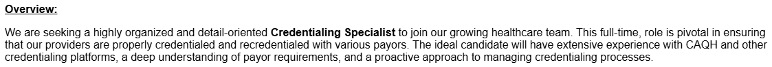 • CPCS (Certified Provider Credentialing Specialist) preferred but not required.